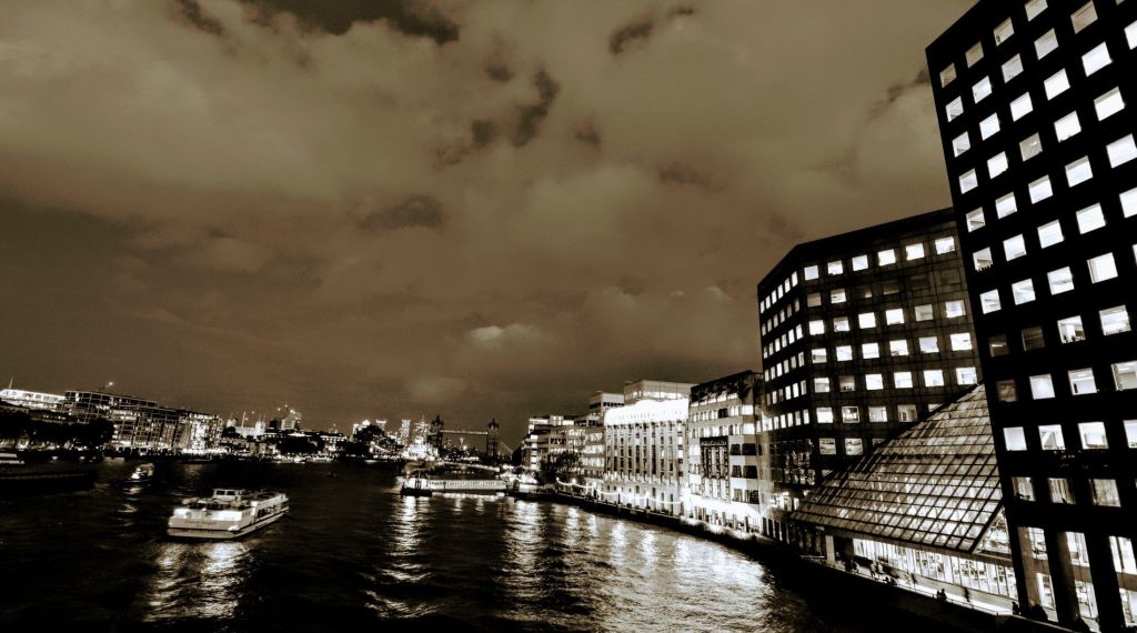 There’s something quite mesmerising about peering over a bridge and watching the world go by. And this sepia-enhanced image captures life along the river nicely with Tower Bridge in the distance.
