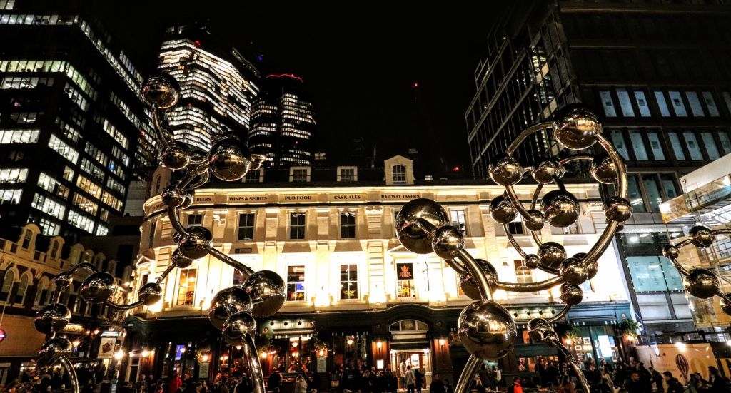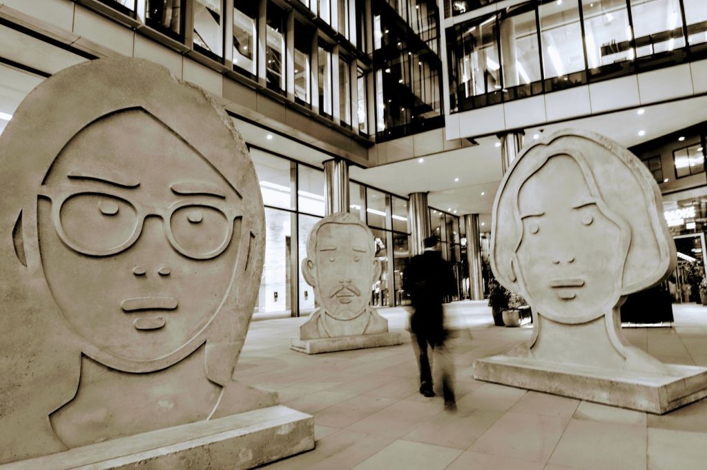 You can’t miss this sculpture outside the Elizabeth Line and Liverpool Street Station entrances. It’s well worth a look to admire its scale and consider the artist’s thought process in its making.