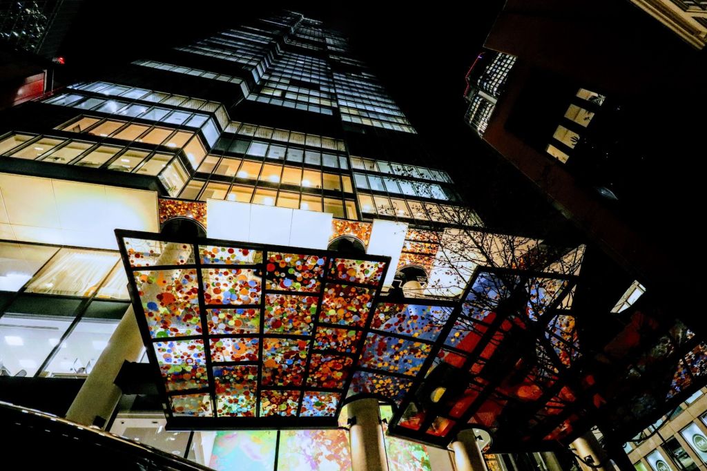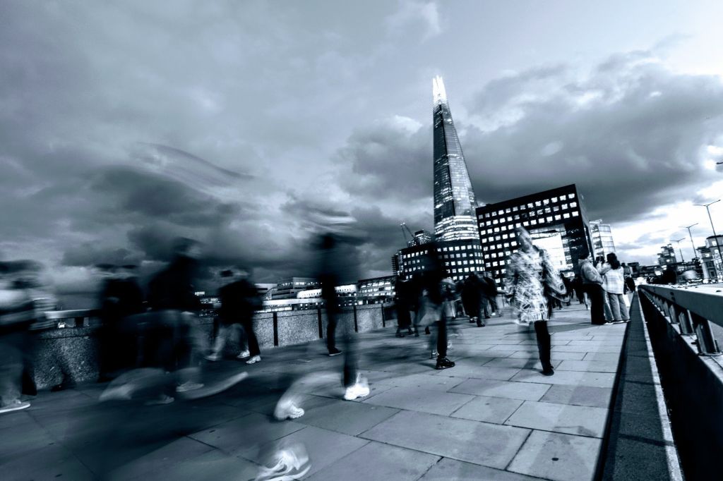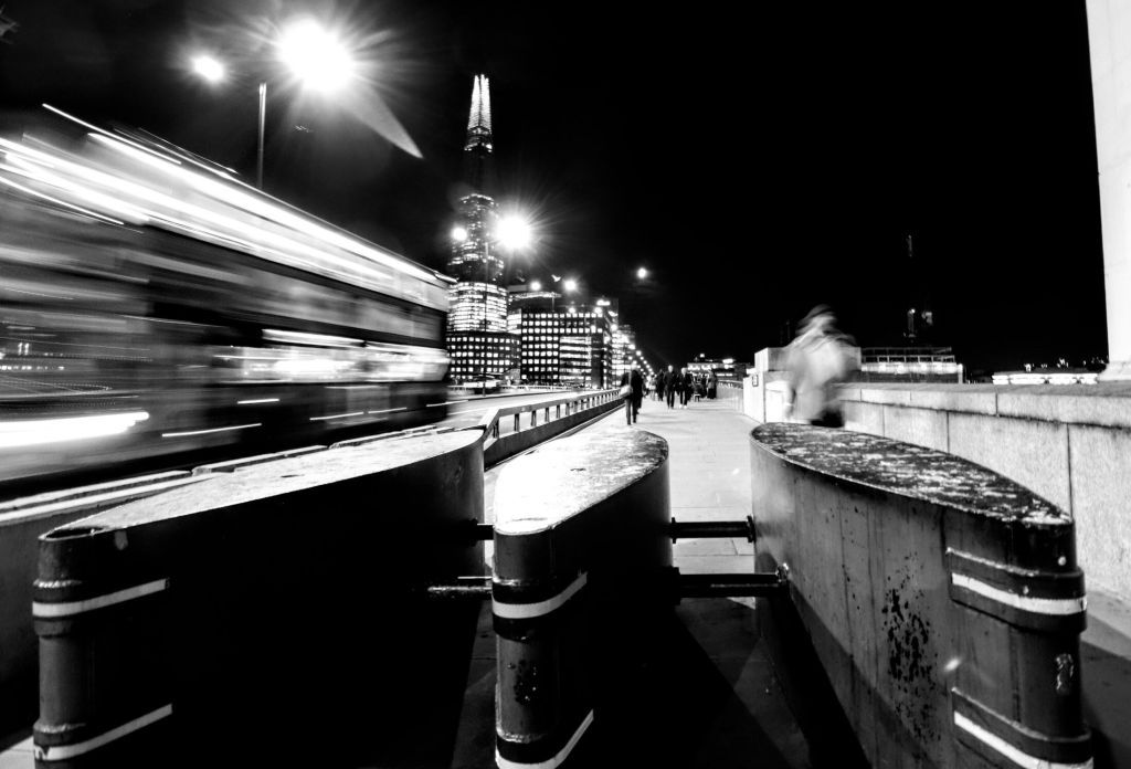 It was time to play with a wide-angle 10mm lens. The slow ⅓ sec shutter speed helped capture the movement of the commuters. They were rushing across the bridge, headed towards the station.