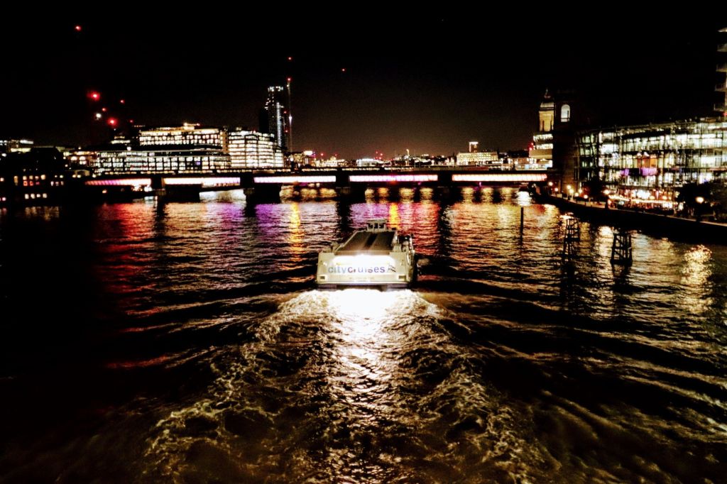 Why not enjoy the Illuminated River display, courtesy of a City Cruises trip along the river? Here is one of their fleet approaching #cannonstreetrailwaybridge