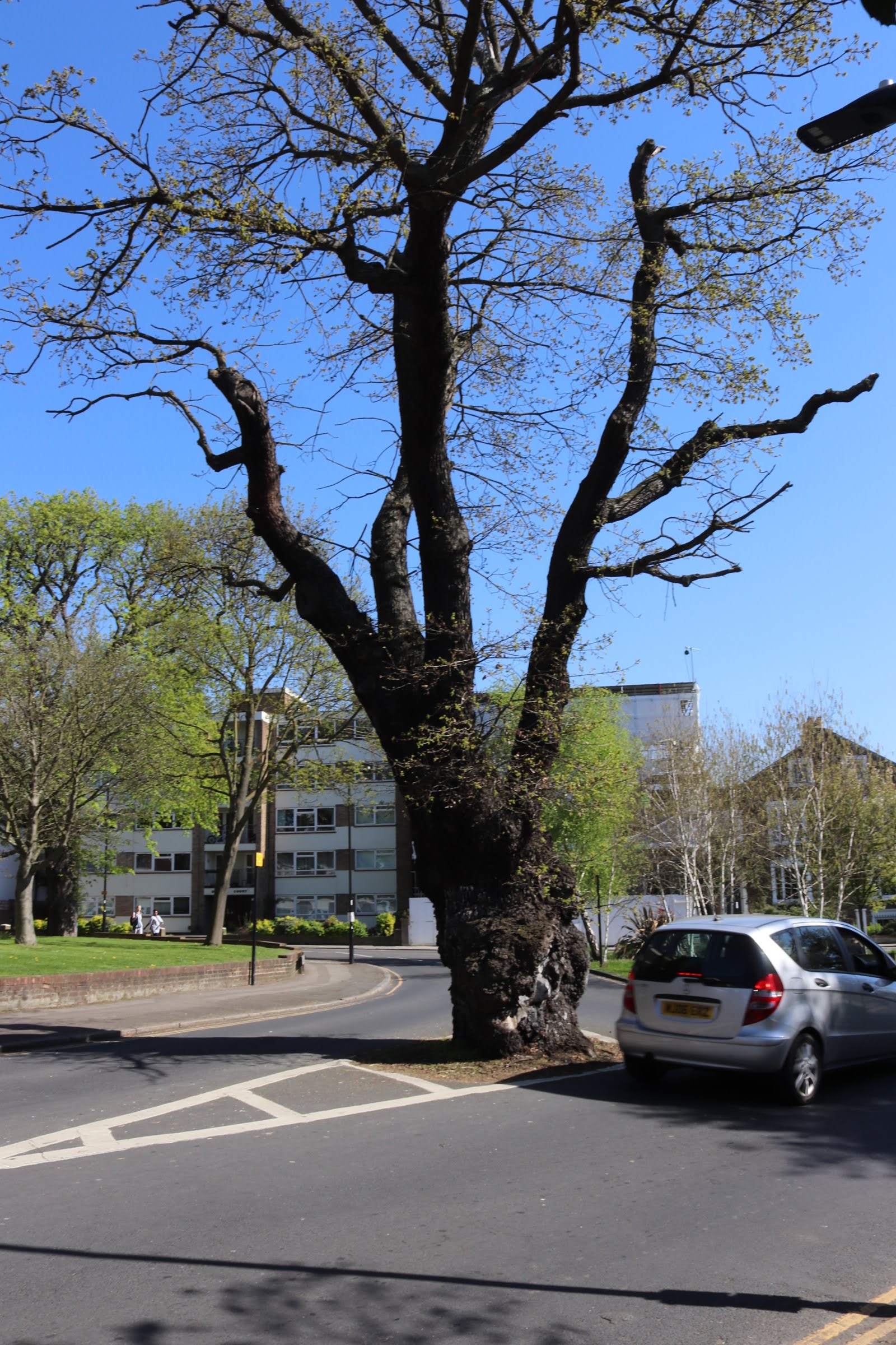 Out of the station and surveyed the immediate surroundings to get my bearings and spotted an interesting authentic Japanese restaurant, the Hare & Tortoise. Not sure how an ‘un-authentic’ Japanese restaurant would differ: I guess it would just be a restaurant? This drew me slightly westerly so carried on walking in this direction and drawn to a marker on Google maps; that of Carlton Road Ancient Oak I decided to visit. Some research indicates it’s the site where an elephant has been buried, and explains why it remains in the middle of the road. It reminded me of the old Oak tree in Carmarthen in the middle of the road and the local fable that once felled, the town would drown…of course it never did (see reference Merlin’s Oak, Carmarthen).