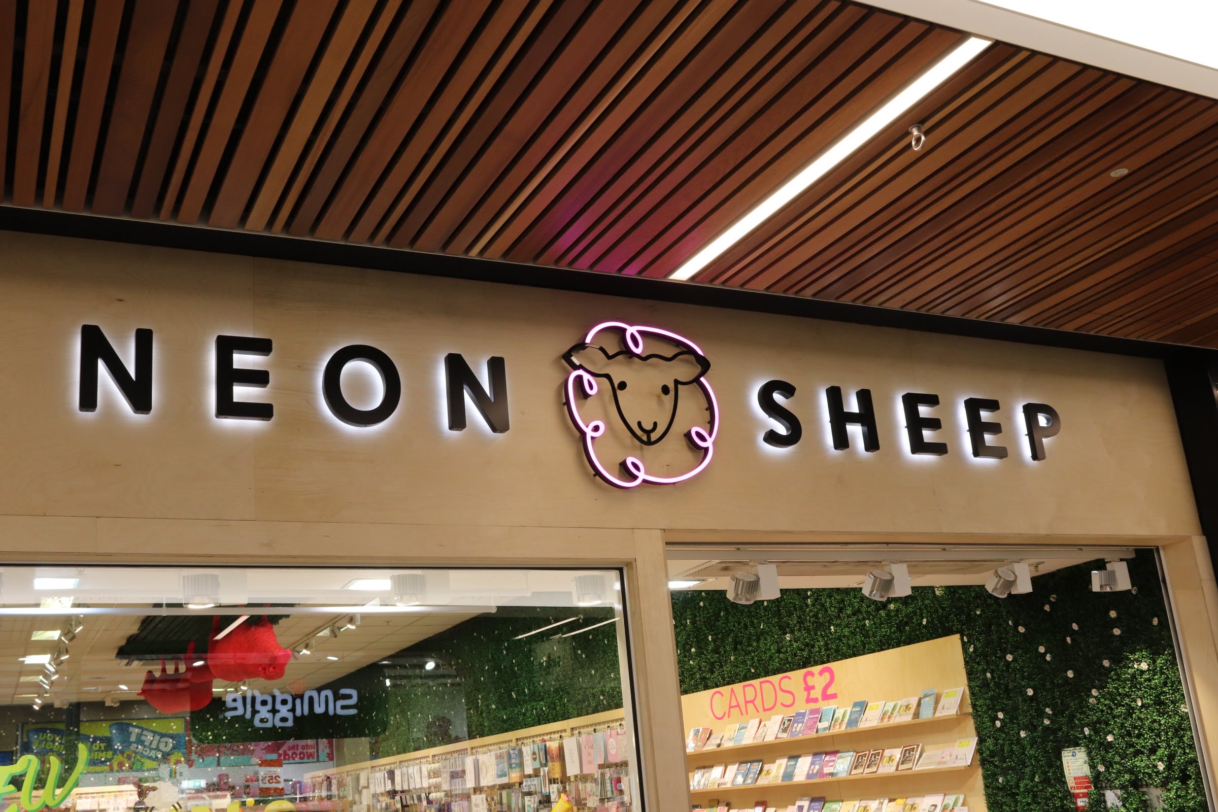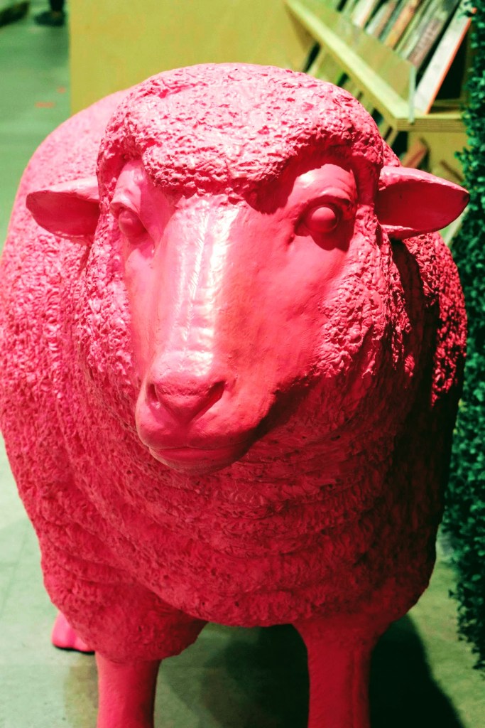 Into the heart of the town through its modern, yet secluded shopping centre and I’m drawn to a pink sheep in a doorway. A great marketing symbol for the Neon Sheep shop. I of course have to stop and call in and chat a while with the shop manager who explains they are the only shop in the UK, although another opening soon in Basingstoke (although they website states there’s one in Grays in Essex as well). She proudly invites me to look up at the ceiling where there are three red sheep grazing upside down too.