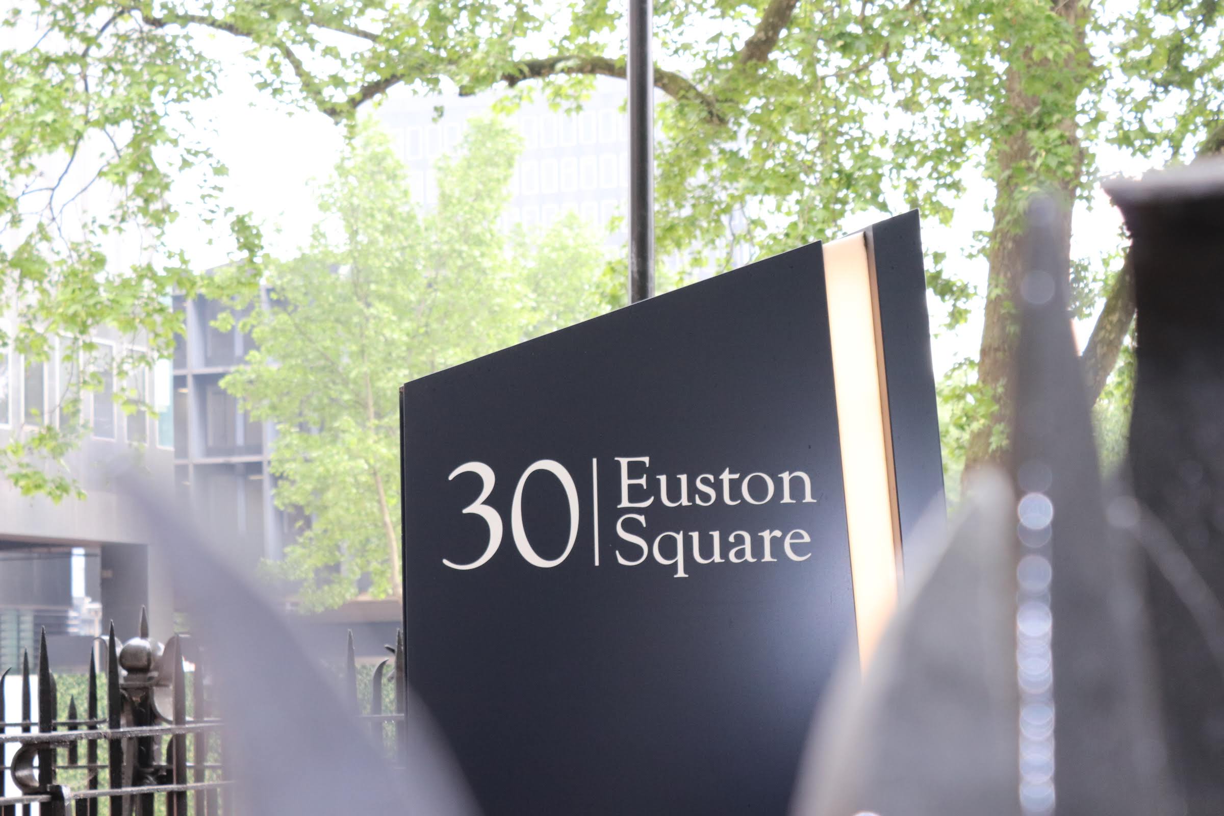Walking along Euston Road, directly in front of Euston Station, there’s the impressive Wellcome Trust building, the modest 30 Euston Square building, a multi-occupied building which in part houses the Royal College of General Practitioners, and the historic London Fire Brigade Euston Fire Station.