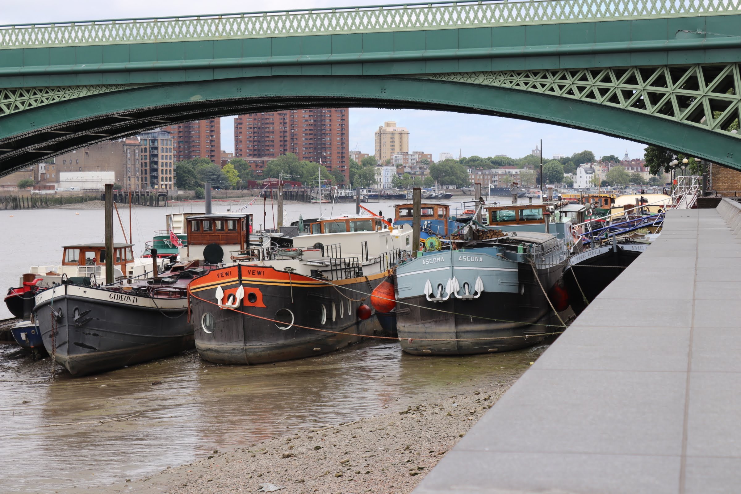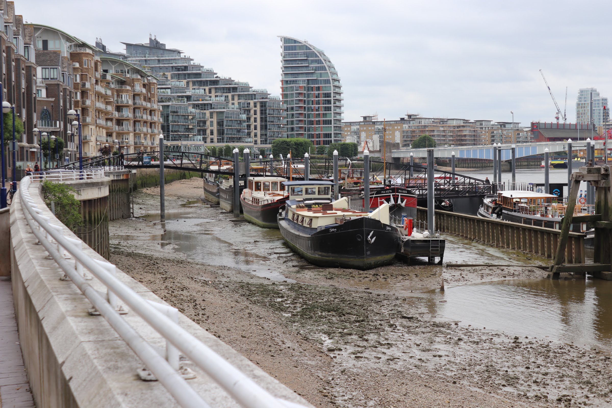 I decide to stretch my legs and in search of the Thames, I head for the Thames Path on the south shore between Wandsworth Bridge and Battersea Railway Bridge to an area known as Cotton Row. Its name suggests an area steeped in history with features such as Plantation Wharf, Clove Hitch Quay, Oyster Pier and Candlemakers, but alas I can’t find any details. However, as with large swathes of today’s riversides, you now see regeneration and redevelopment through the building of fashionable apartments, modern offices and walkways, and of course Old Father Thames himself, with its ever changing scenery. Oh yes, you’ll also find the London Heliport here too.