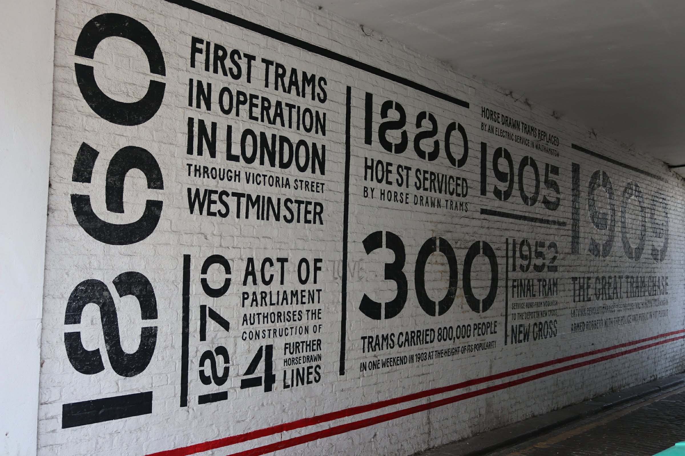 The walk from Queen’s Road to Walthamstow Central is somewhat intimidating as it takes you through a tired social housing area, and leads you through a building site. However the building site is part of Waltham Forest’s regeneration plan for the area to make the transition between stations more pleasant…time will tell, but as you arrive at the Central station, and you look closely, you’ll notice the wall mural that clearly tells you where you are.