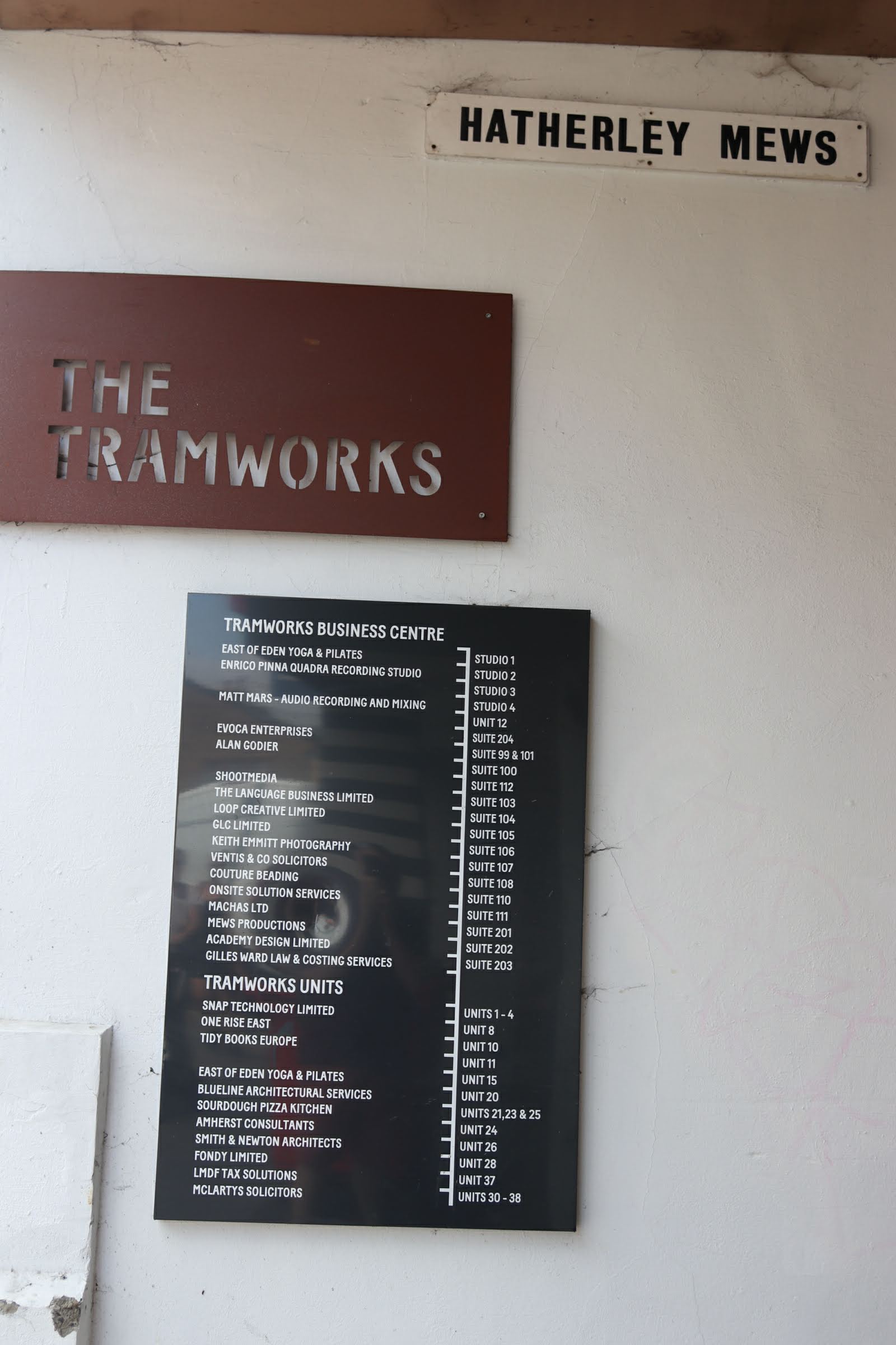 Adjacent is the entrance to Tramworks, converted mews that amongst other things once housed stables for horses pulling trams through Walthamstow. It’s modern diversity is somewhat epitomised by a simple logo on one door advertising an online travel app sn-ap.