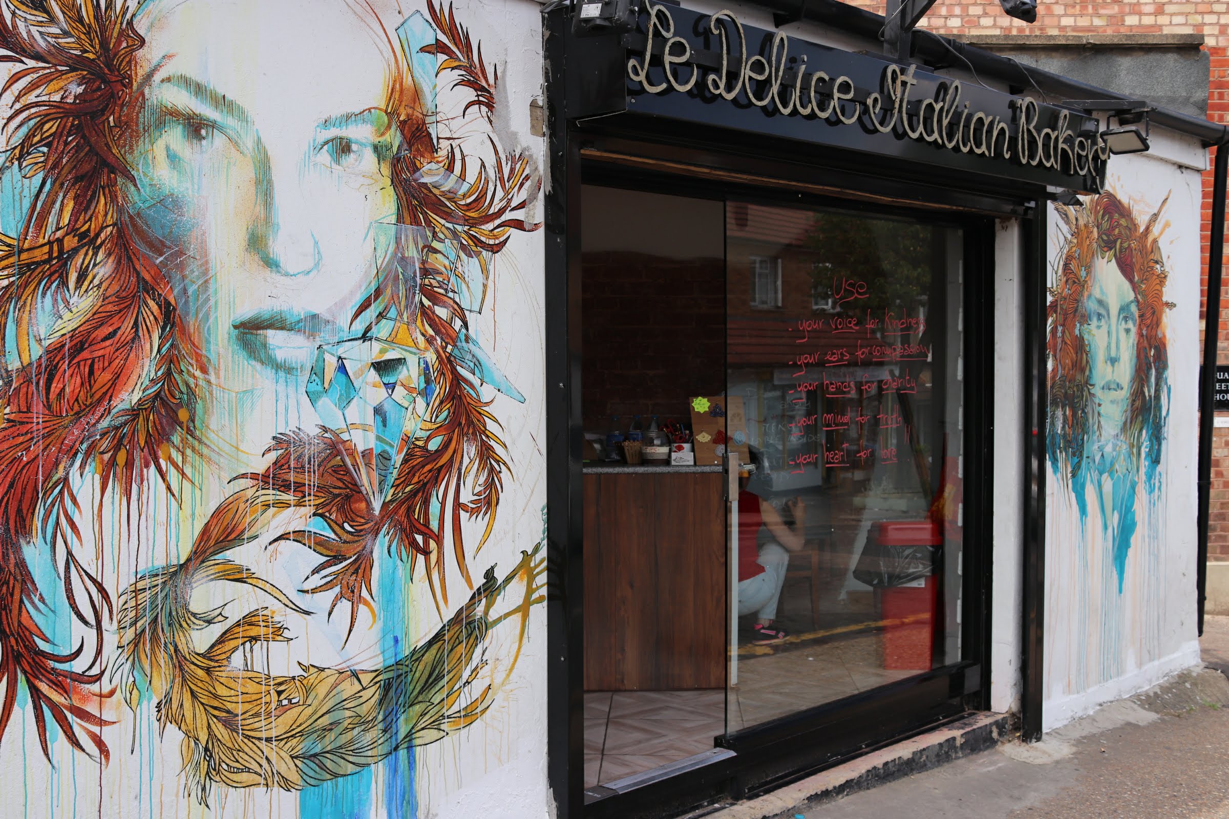 Further down the road I chat with a worker in Ruby Stables who was busy reclaiming a decorative garden urn, and returning towards the town, I’m struck by the artwork on display outside the Le Delice Italian Bakery. I end up spending some time chatting with the baker and shopkeeper (Manola) and I was tempted by the array of breads on display. This is a shop worthy of visiting if Italian bakery is your pleasure.