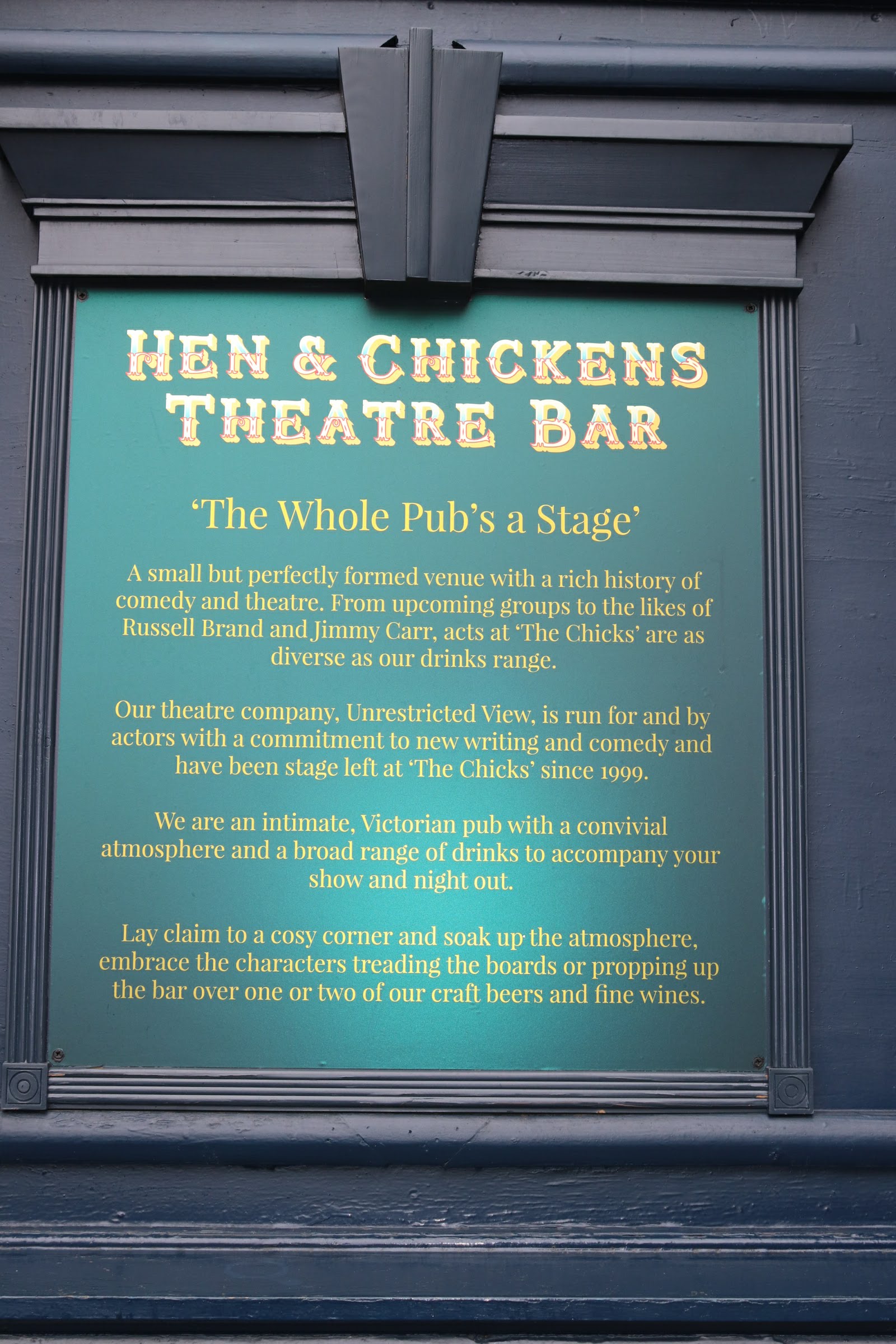 - Hen & Chickens Theatre Bar – which offers fringe theatre and stand-up comedy events, and