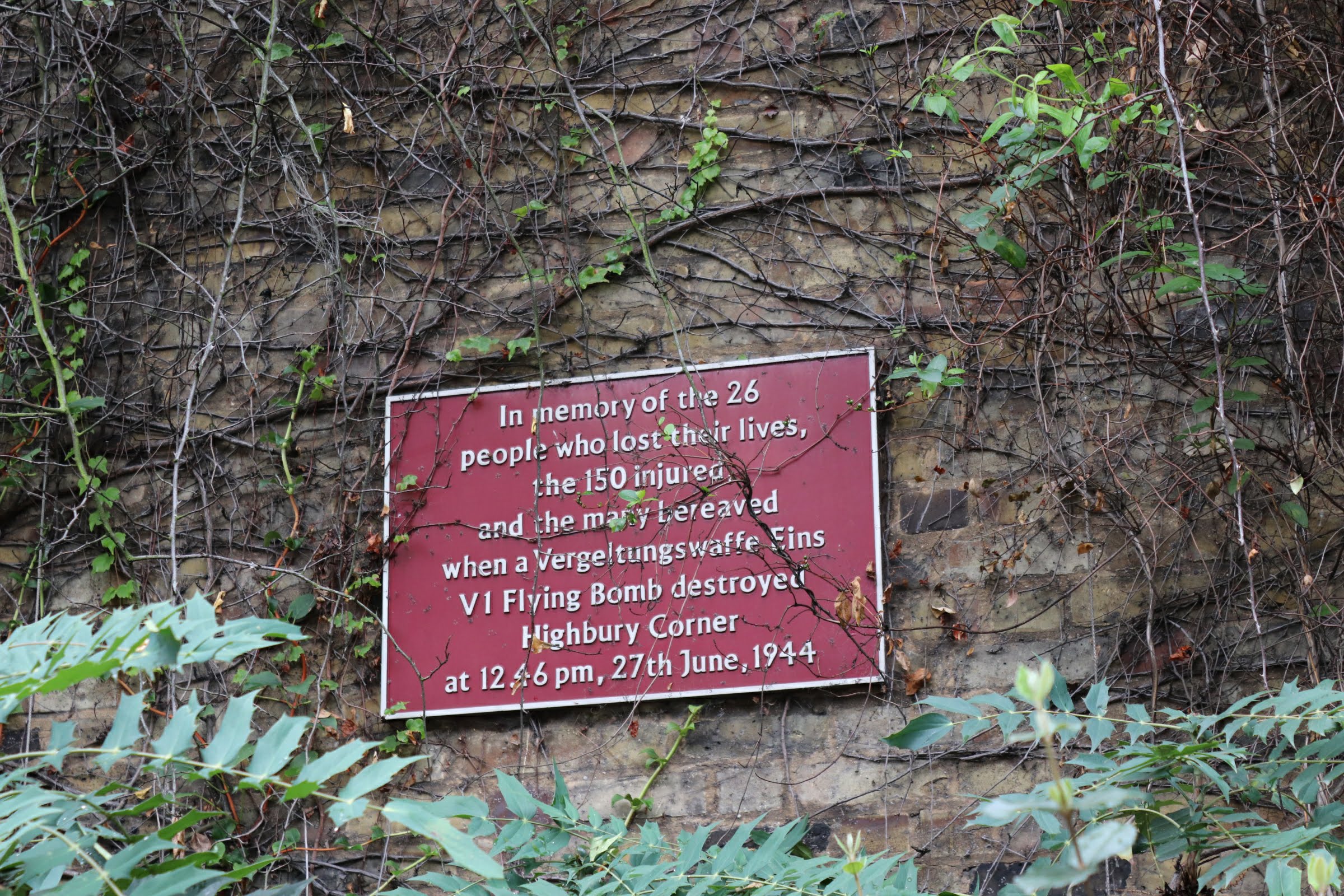 This is a peaceful terrace of restored Georgian houses hidden from the main road by a narrow strip of gardens, but wide enough to dampen the sound of traffic. On first glance you wouldn’t think of giving the terrace a second glance until you walk around and find an historical plaque commemorating the loss of 26 lives due to a V1 flying bomb on the 27th June 1944. This link is one of many personal accounts of a local resident that can be found on the internet. The bomb not only destroyed part of the station (which was the intended target), but a large part of the surrounding area too, including 12 houses at the end of Compton Terrace.
