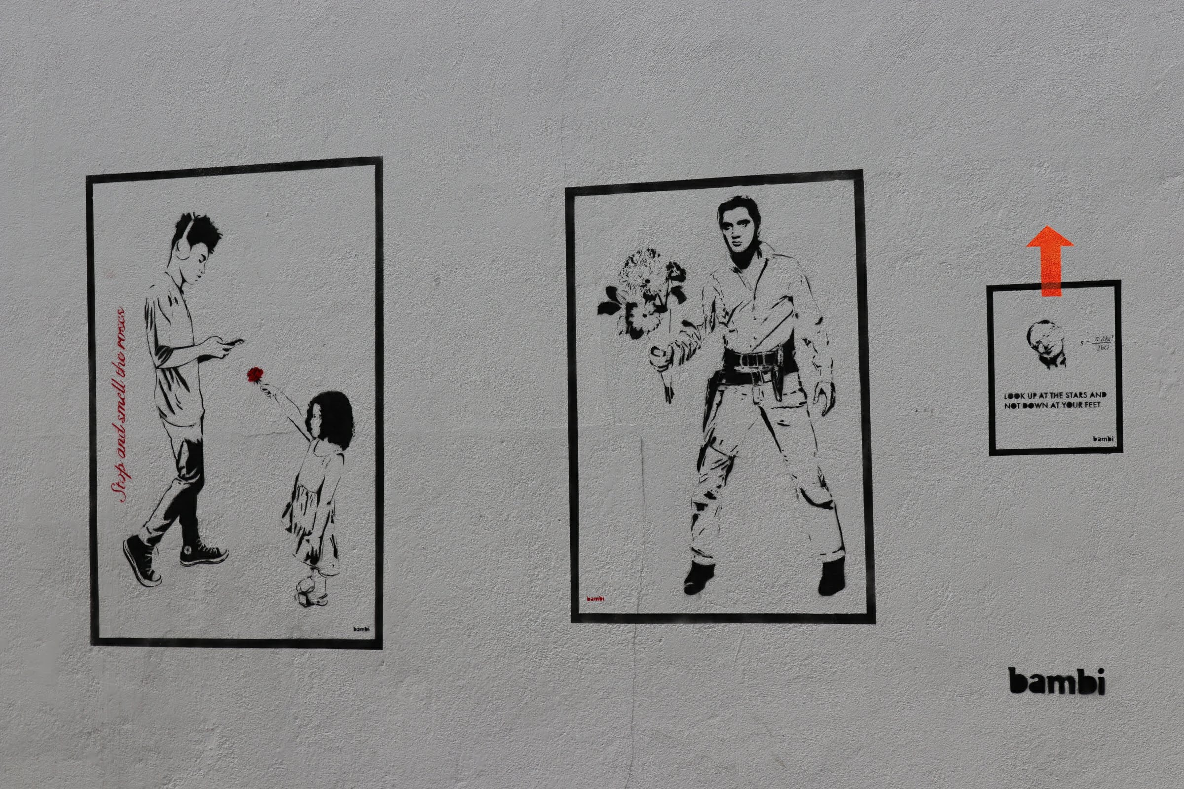 Few people know that Regents Canal runs directly under Islington so I decided to see how this happens, but en route I stumble across a few interesting sights. Firstly, Bambi – street artist, who is proclaimed as the female Banksy, has recently adorned some hoarding in Shillingford Street – go and have a look.