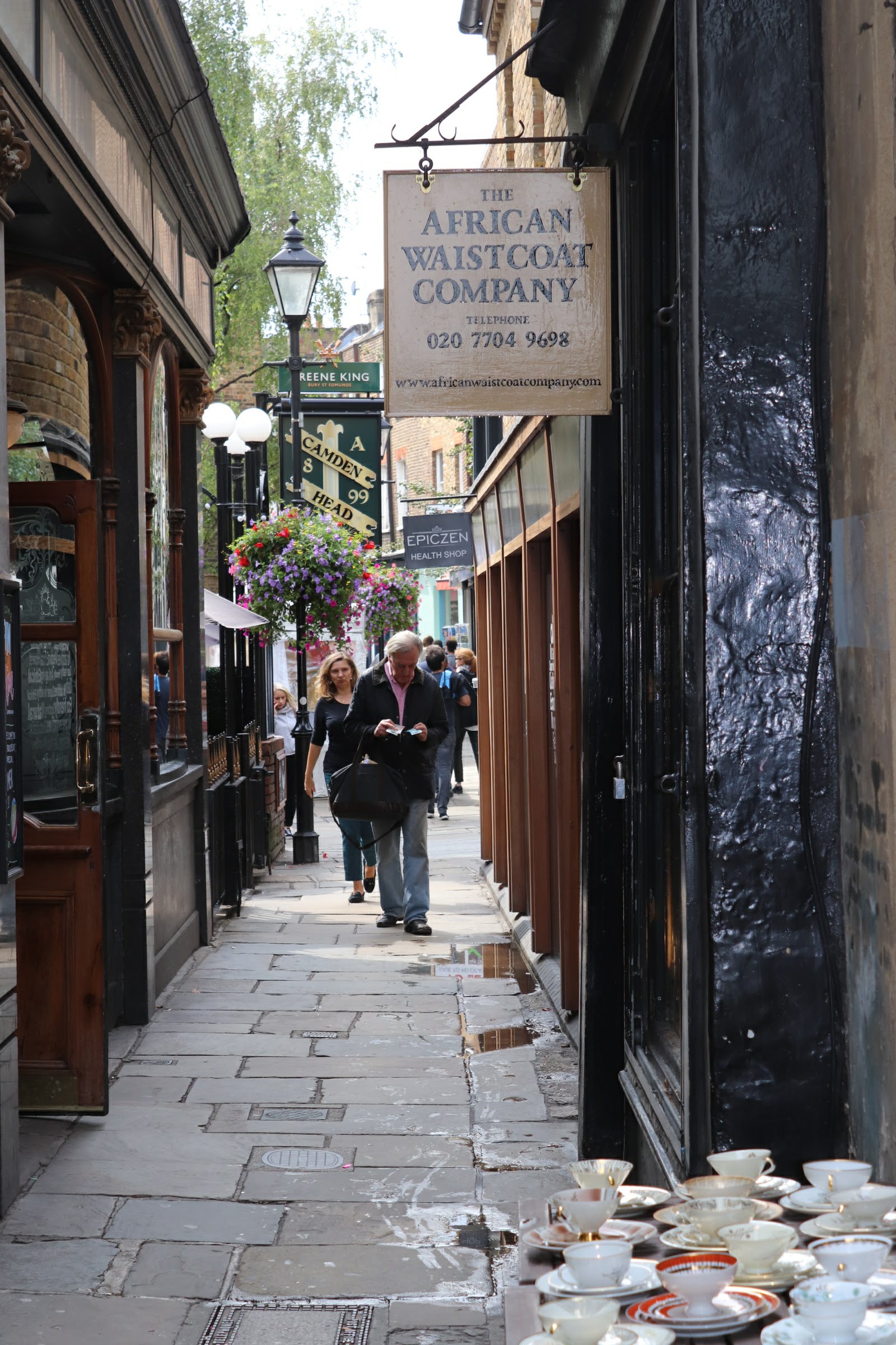 Only a few shops caught my eye, as in the main and with a few exceptions, I find high street shops to be bland repetitive templates of national chains. Maybe I’m being unfair on the smaller independent shops which always have a quirky attraction especially if they are selling locally made/sourced goods or antiques…and this is exemplified throughout Camden Passage and its Market. I was particularly captivated by the street feature outside Danny Oh, a local hair salon.
