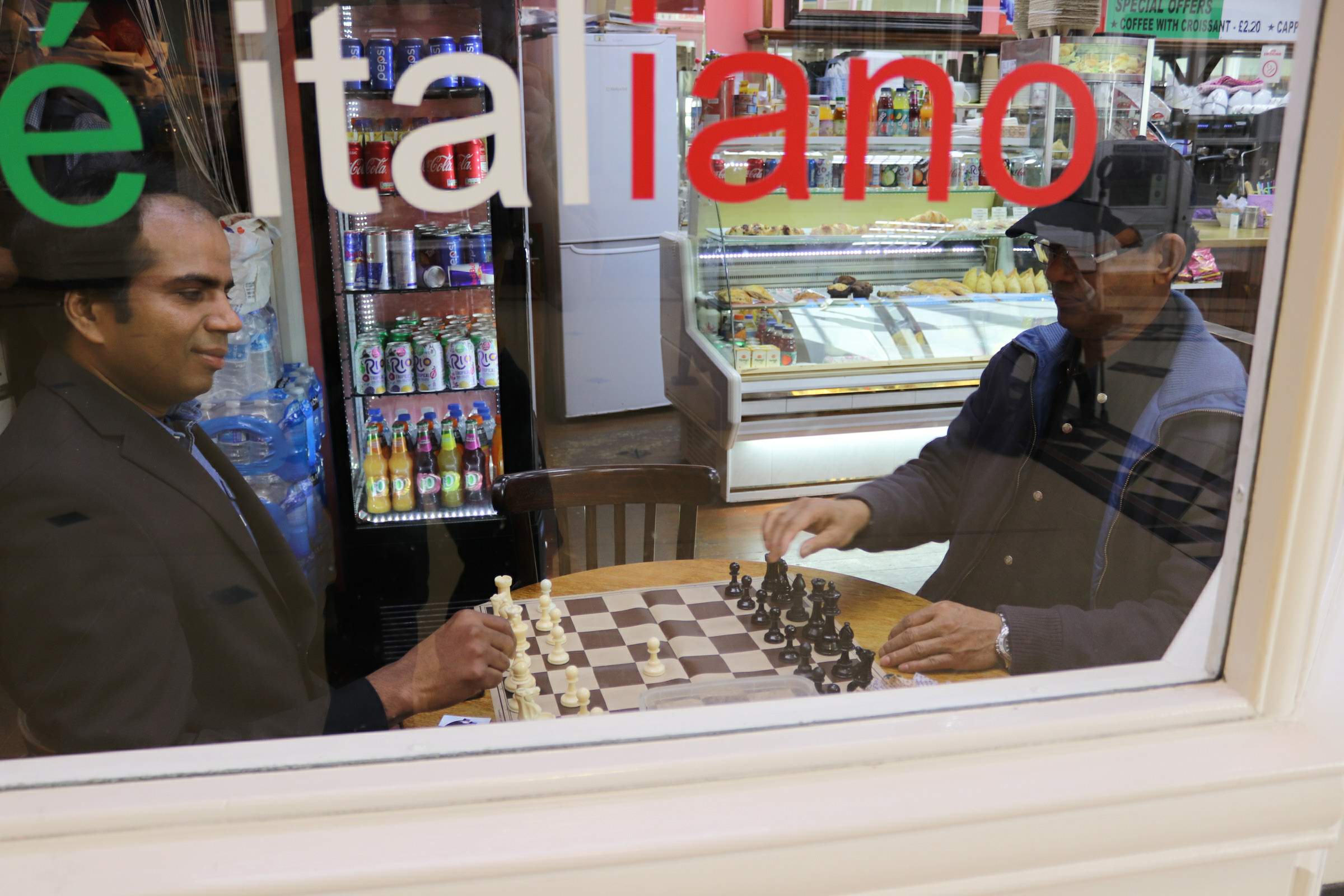 I begin this journey by going into the Vicarage Fields centre from the station and within minutes I thought my journey wouldn’t go any further as I spy through the window of ‘Caffe Italiano’ a couple of gents playing chess with a gathering of onlookers; so I decide to go in and introduce myself asking permission to take their photos. They are all very amenable and I’m invited to play chess against ‘the best chess player in Barking’. This was all in good fun, but he was accompanied by one of the onlookers, but little did it matter to the outcome as I explained it had been over 20 years since I last played. Thankfully though I didn’t embarrass myself completely and the sequence of shots I took set me up nicely for the rest of the day.