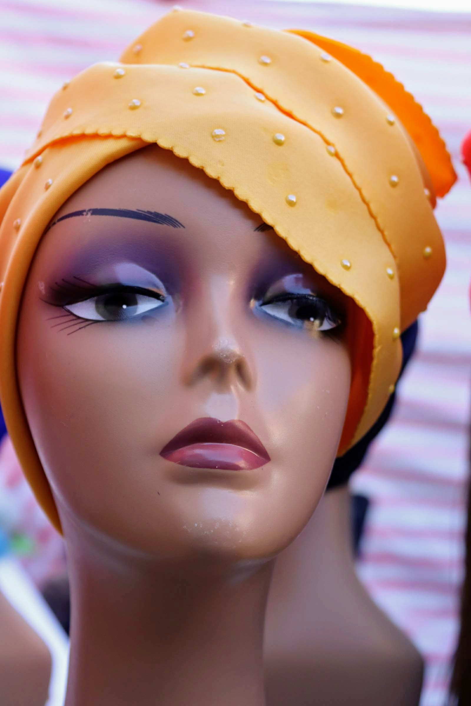 The vision of the dummies heads caught my imagination and carrying on through the market, I stopped to admire a smaller stall with dummies heads adorned with different head gear and weaves. I introduce myself to the stall holder, Lola, and we have a short yet flirtatious conversation. Lola has an infectious smile as she explains the headgear has African origins. I compliment her on the display and ask if she names the dummies? We laugh…Meet Lola below as my ‘Picture of the Day’.