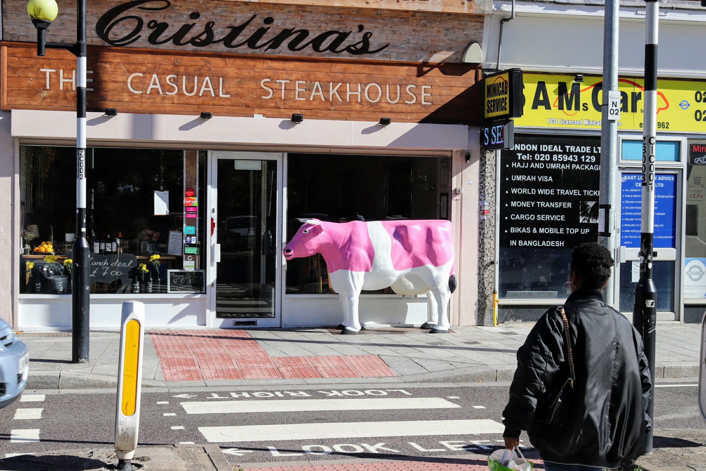 Barking has two lively shopping areas adjacent to each other: the Vicarage Fields shopping centre and the open air market that runs the length of Station Parade through to North Street where there’s one particular restaurant that cleverly captures your attention – especially if you like pink friesian cows; well done to Cristina’s – The Casual Steakhouse!