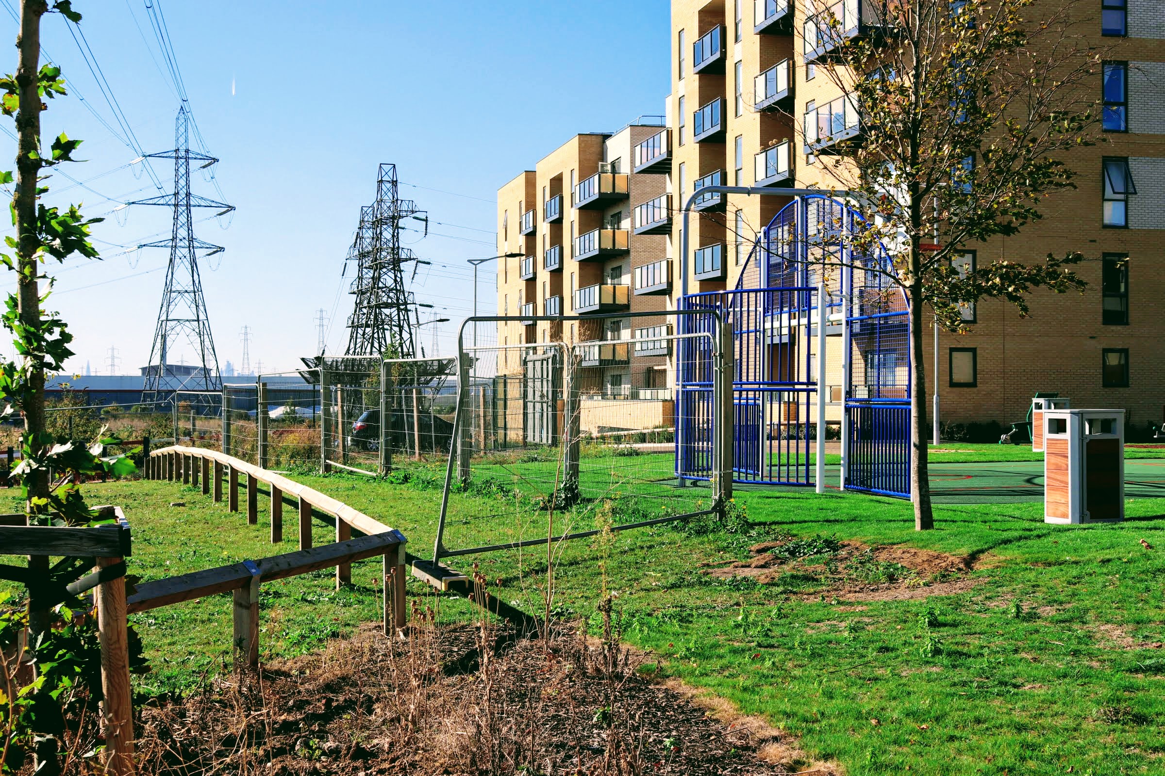 I head off to Barking Riverside (or Creekmouth). The area is and continues to undergo massive regeneration but it is overshadowed by a massive power distribution centre and its dominant pylons where Barking power station once stood , Dagenham Sunday Market and a ship container store. Nevertheless the ambition is evident with extensive new build surrounding the area. The only obvious issue is that the location is so isolated, but I guess the developers have looked beyond that, but for now, the new Riverside Bridge School stands in its own grounds with no surrounding infrastructure or amenities; and the only way for children to attend is by car or by bus (the EL1 or EL3).