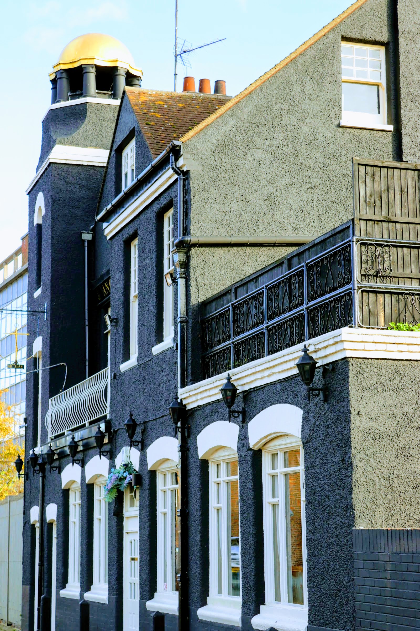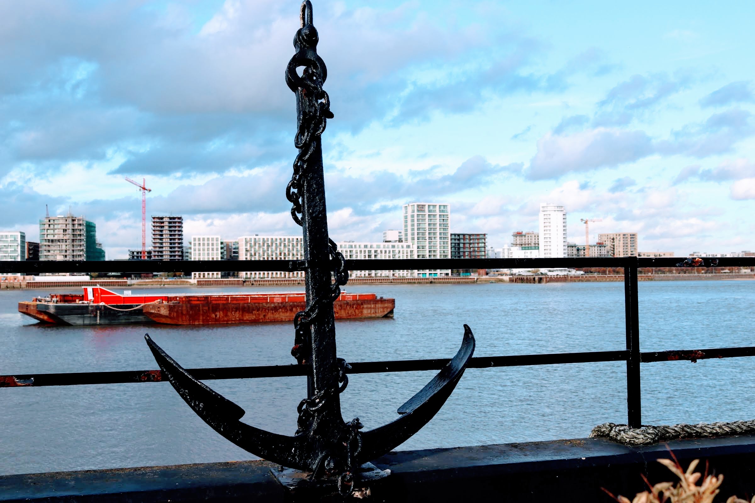 A little further I come to the Anchor & Hope pub, a seemingly traditional working pub now catering for both the local working clientele and the passing tourist encouraged to walk this route. It appears I’ve now moved from Greenwich into Charlton, another borough I’ve not been to until now. Before moving on, I try to capture the essence of the pub, painted all in black except for a golden dome on one corner. Striking and attractive in a peculiar way.