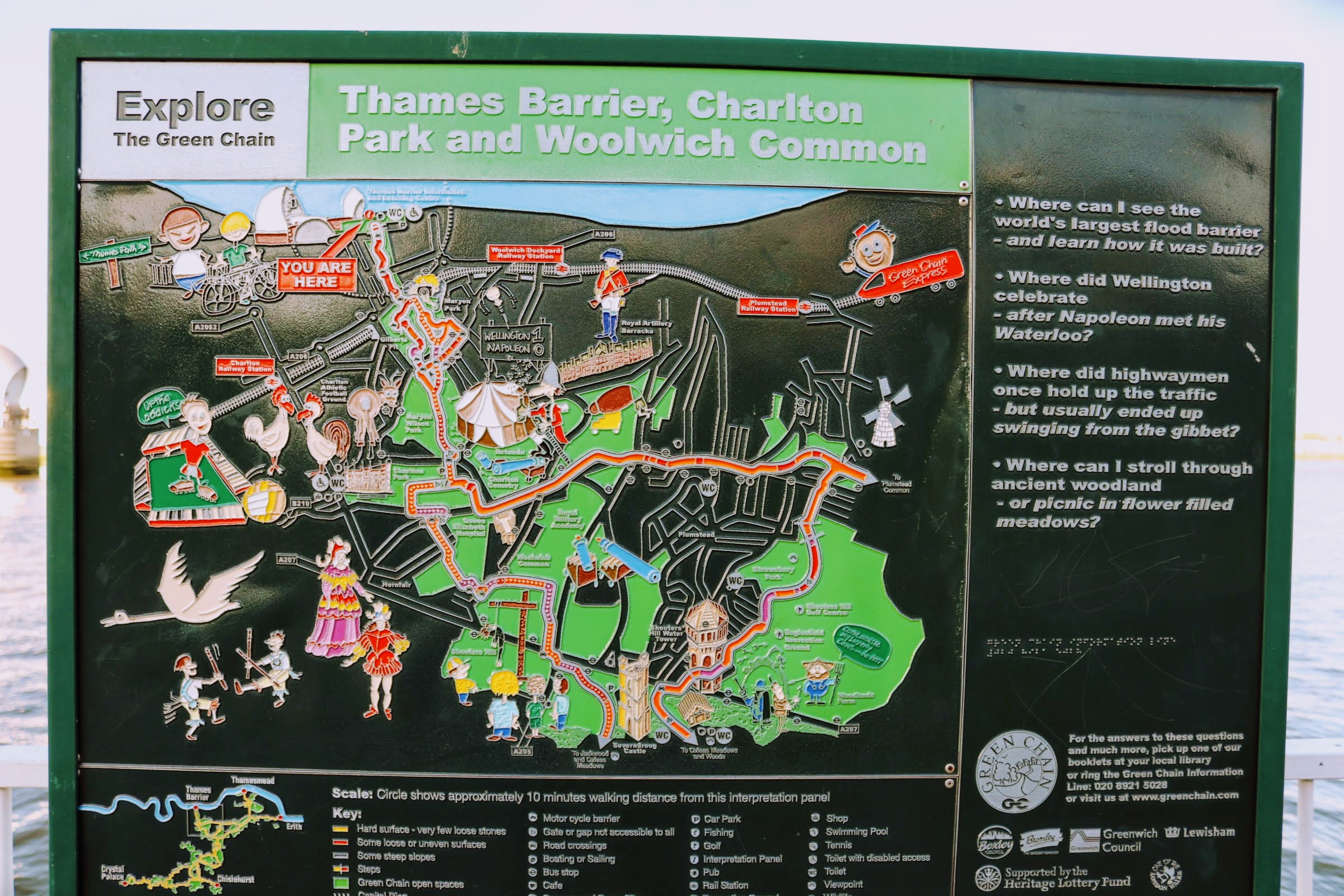Whilst here, I meet John and Catherine, a couple from Cambridge who were spending time walking the full length of the Thames. Today was the end of their third route; they explained they’re not doing the route in geographical order, but nevertheless intend on making sure they do complete it over a period of time. I wish them well as they head off, and as I walk through the tunnel that goes under the barrier, I see a wall etching outlining the full extent of the river.