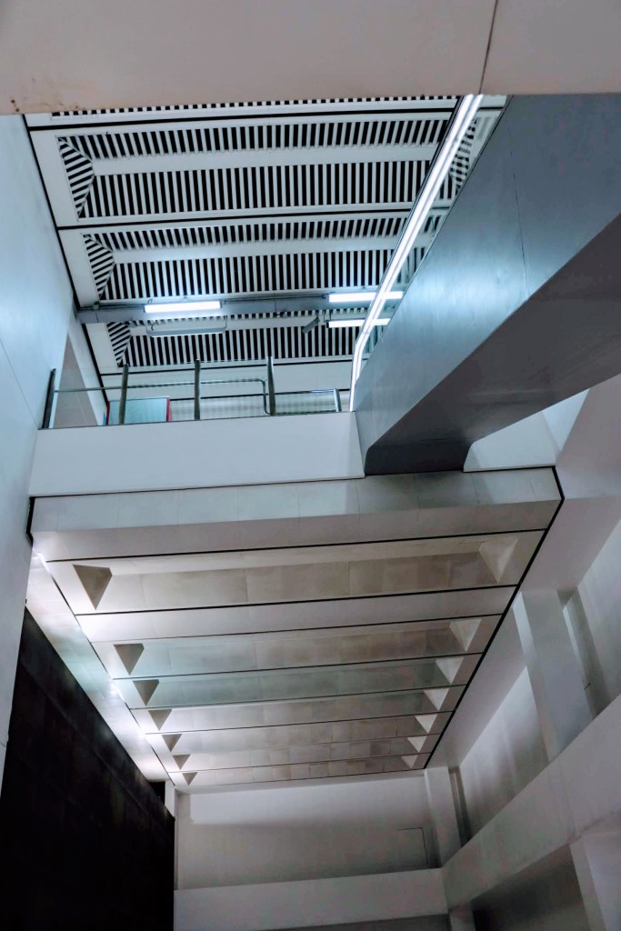 For me, the simplicity and symmetry of the roof space in Terminal 4 has an attractive quality that helps define the space. Passengers seem oblivious to the effort made to create this effect as their focus is on ensuring they are in the right zone. The roof is offset by an expanse of glass bringing the outside light in and draws the eye away from this spectacle above.