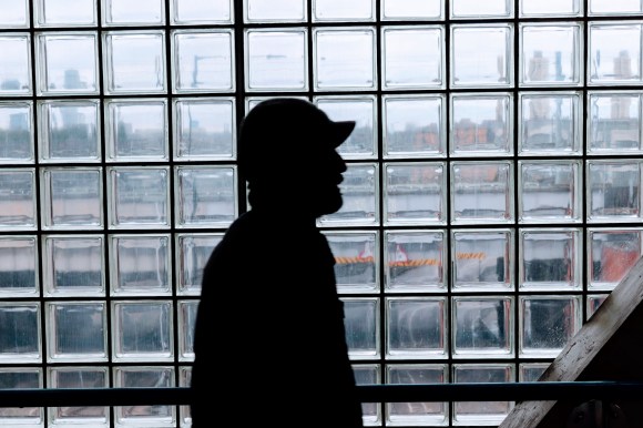 I was trying different settings to catch the light and as commuters passed in waves, some looked my way. Those shots didn’t work, but persevering, this guy in muted commuter mode ignoring everything around him, provides a great silhouette.
