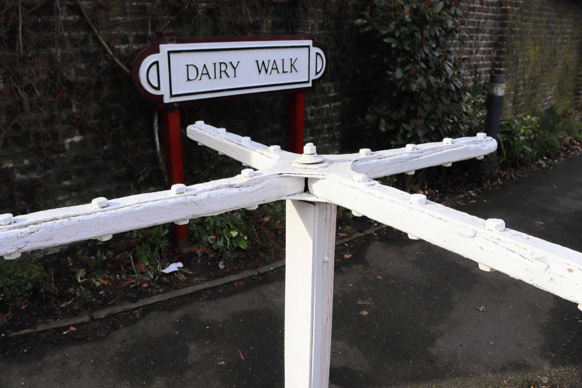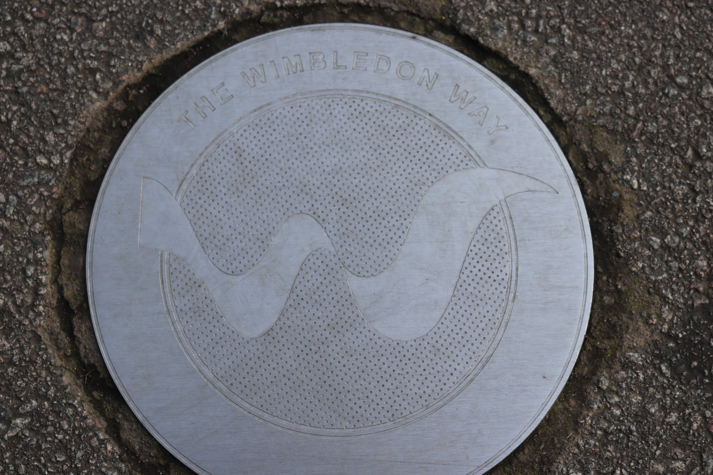 Passing through the village, I hadn’t planned on heading to the All England Lawn Tennis & Croquet Centre, but as it’s only a short stroll away, and it is a fine breezy day, I think ‘why not?’ Look closely, you’ll see embedded in the pavement small round discs marked The Wimbledon Way’ so watch out for them as they’ll guide you around the area; I stop to admire one close by to ‘Dairy Walk’.