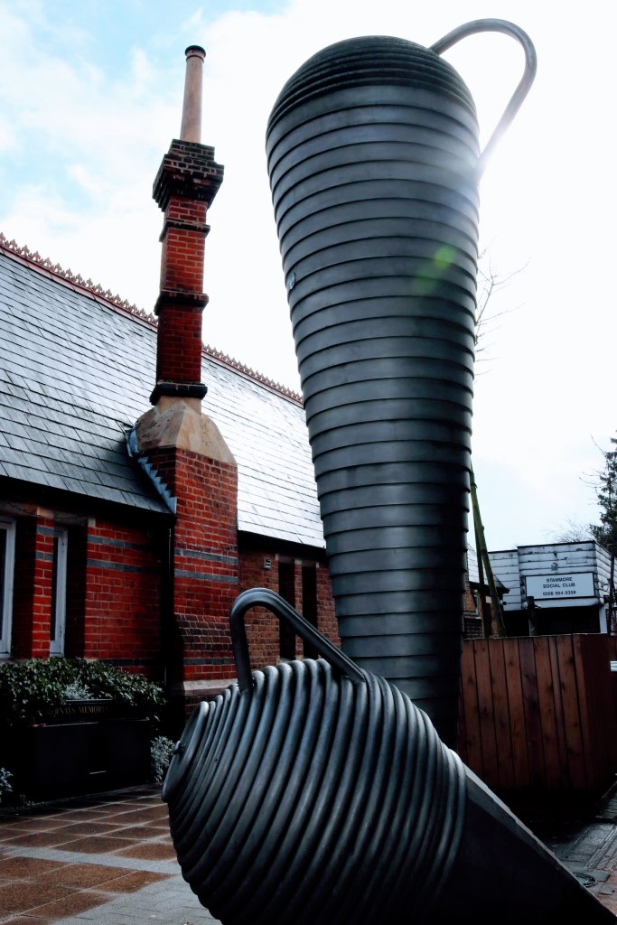 Arriving at Canons Park station I cross the road into an attractive modern housing complex and Business Centre where once stood the DHSS/DSS Training Centre. The centre was what I once described as a ‘flat pack former hospital’. I think across the country, field hospitals were erected quickly to deal with the injured from the World Wars, and post war they were converted into government establishments. Functional but cold. The address was Honeypot Lane, where now stands an elegant sculpture by Andy Hazell entitled ‘Seed’ – inspired by the idea of settlements and putting down roots.