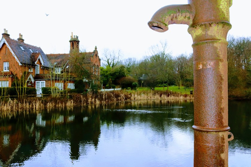 Just across the road are Spring Ponds, also known as Stanmore Little Common, which is a small green space containing the Upper and Lower Spring Ponds, reportedly man made, dating from at least Roman times and possibly earlier. Indeed Upper Spring Pond is also known as Caesar’s Pond, based on a tradition that there was a Roman garrison quartered near there. Boudicca (Boadicea) almost certainly camped by and drank from these ponds. It is these stony ponds or “Stane Meres” that gave Stanmore its name. This photo almost made it as my ‘photo of the day’ and maybe if I could have recreated a downpour from the pump handle emptying into the pond, it would have been quite humorous.