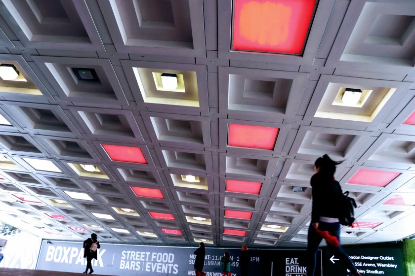 I decide to hot foot it to Olympic Way by tube (a bit far to walk), which is directly by Wembley Park Station where the DHSS/DSS Regional Estates Offices once stood. The building still stands but the area is now so different since the re-erection of Wembley Stadium in its current guise and pedestrianisation of the immediate surrounds. This was a brief stop over and I think it warrants a return trip to explore in more depth. But for now, the underpass with its changing lights, and walkway to the stadium provide for some interesting photo opportunities where I also capture today’s ‘picture of the day’.