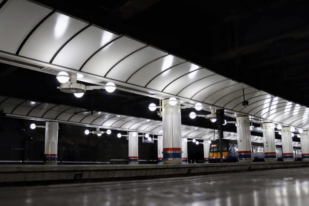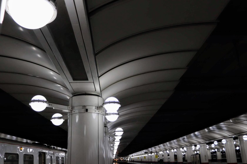 At the time I moved to London (1990) and started commuting through the station, it was undergoing massive redevelopment and over the succeeding years it evolved into the station it is today. The platforms were re-modelled into, what I thought at the time, unexciting, modular and functional. But the more I looked, the more iconic I felt the vaulted roof with supported lighting became; so much so one of these pictures has made it into my ‘picture of the day’ (see below).