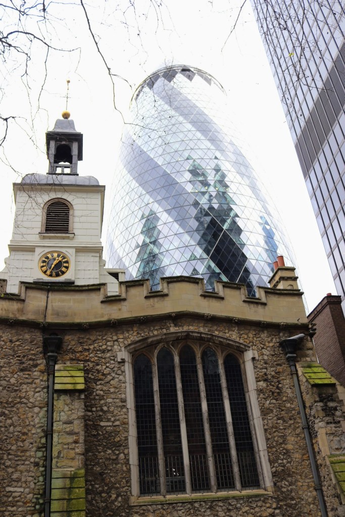 Bishopsgate leads into Leadenhall: both areas are full of history and where the old architecture is often dwarfed by the modernist statemented building, such as The Gherkin and The Leadenhall Building where office workers compete with the casual tourists for prime spots for lunch or simply to socialise. Today is a particularly windy day which is accentuated in alleys and building undercuts with gusts strong enough to blow you around.