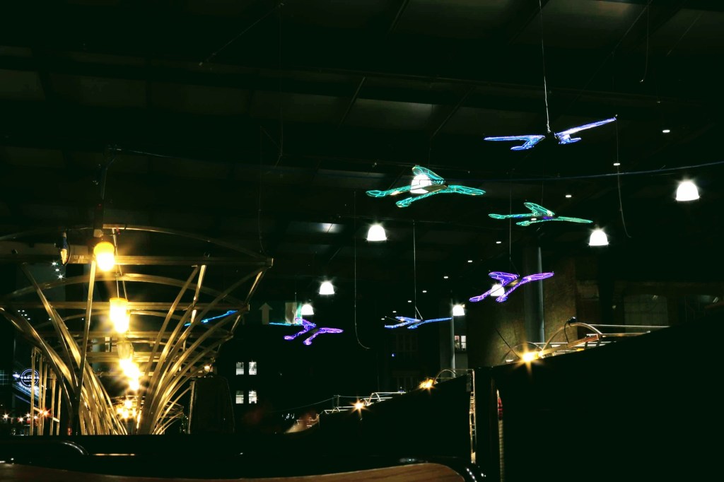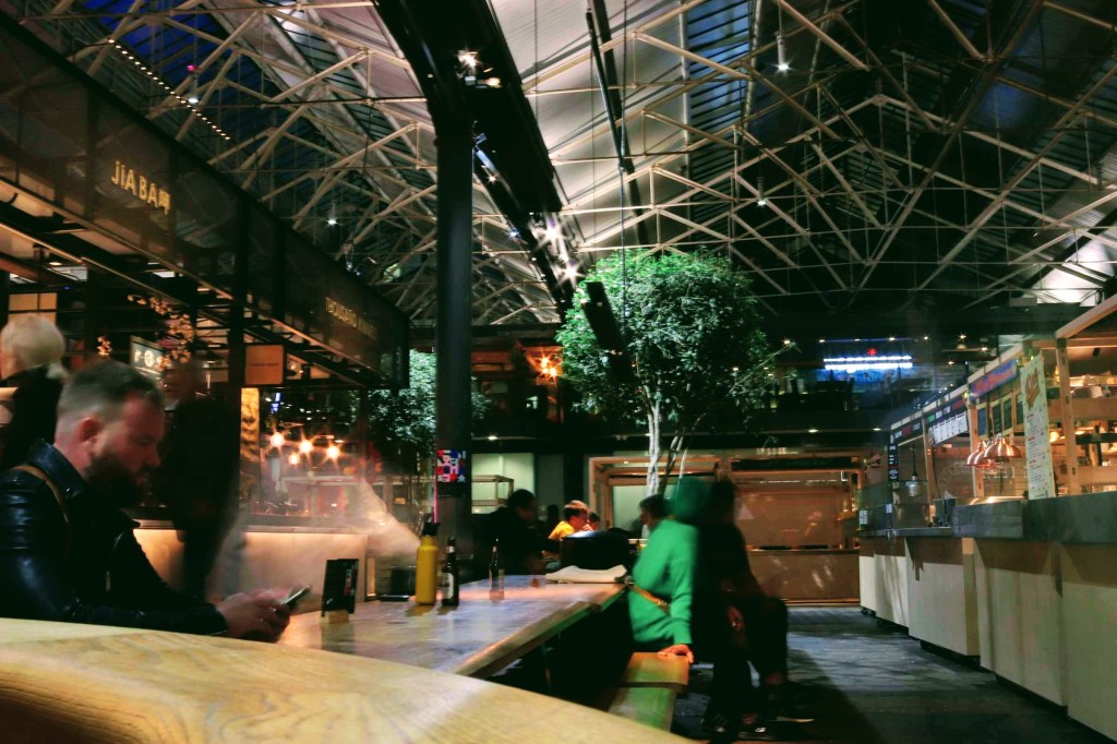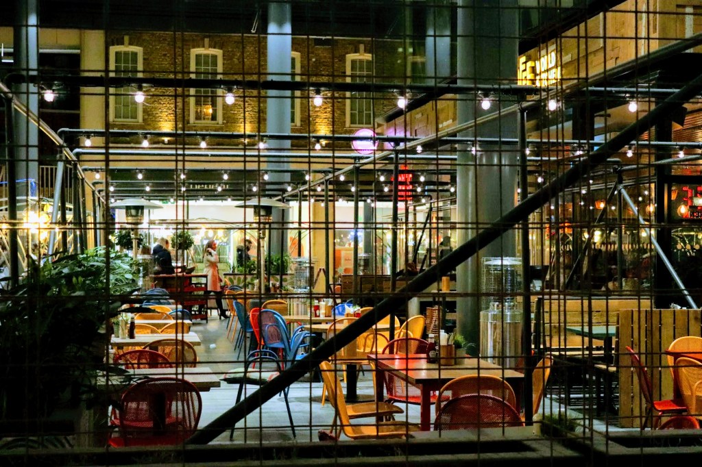 I end my visit in one of my favourite haunts: Spitalfields Market, and although traders are closing up their pitches, evening time created an opportunity for some different pictures. I tried some long exposure shots to capture the effect of people walking through the frame, but such was the lighting that I’ve barely captured their ghostly image, nevertheless, these night time images of inside the market and en-route back to Liverpool Street ended what has been an interesting day.