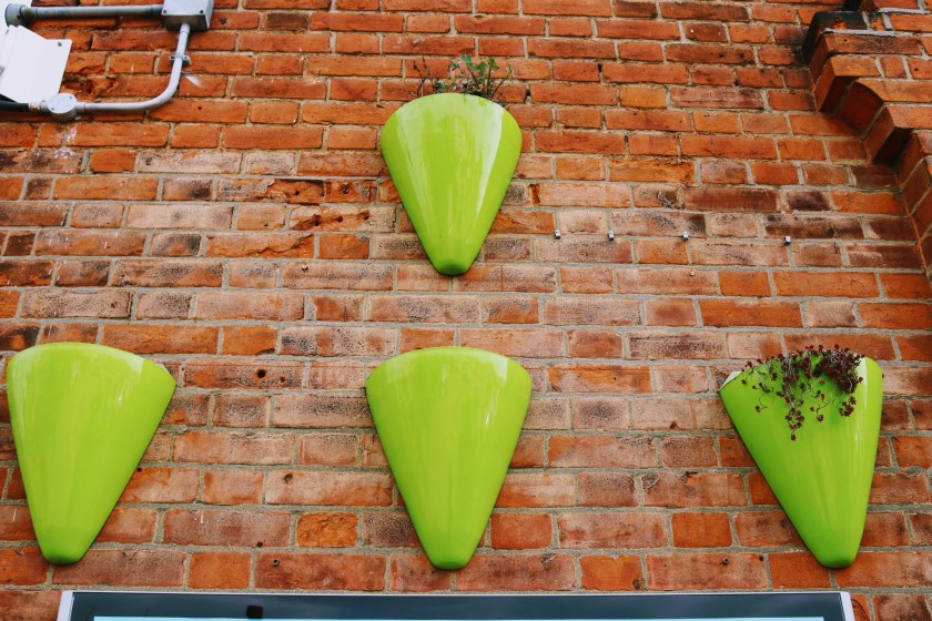 Today’s bright sunshine accentuates the colour of the seats, which on one side is occupied, but this side is free. The combination of the colour and shape makes for an interesting shot; and I’ve tried to draw a parallel with the offset nature of the individual seats and with the straight edge on the left.