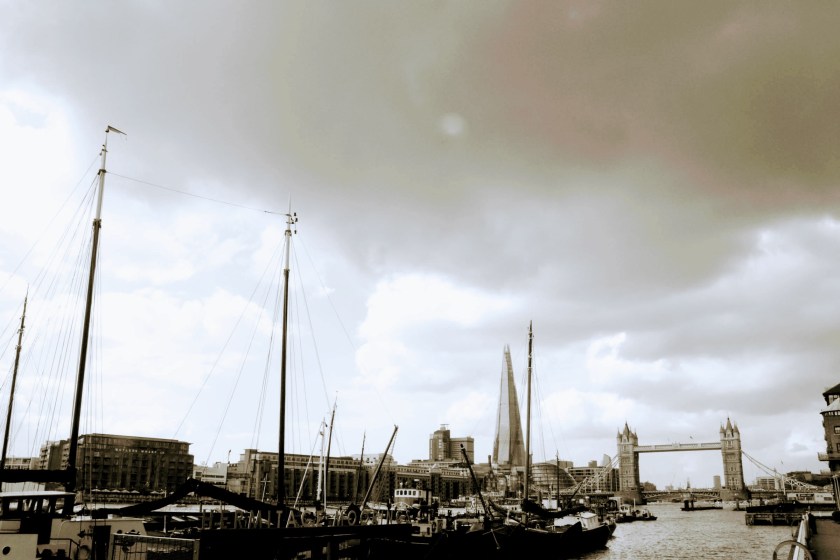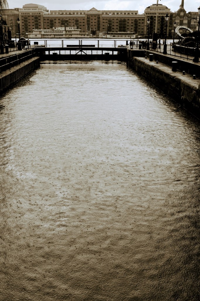 The sky looks ominous as I head towards St Katherine’s Dock and I stumble across, and almost pass by an unassuming gateway to the river known as Alderman Stairs (see page 31 of this link). The wash of a passing boat splashes against the steps and serves as a reminder of the history of such steps up and down the river.