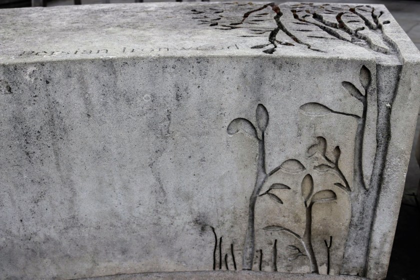 The church sits on the river so a quick canter around the back of the church and I’m overlooking the river with The Shard for company ahead of me, and London Bridge to my right. There’s what appears to be a collection of stones as a seating area, but on closer inspection there’s an inscription explaining the stone bench was part of an Architectural Student Award in 2009. Each stone engraved with a floral design and its name.
