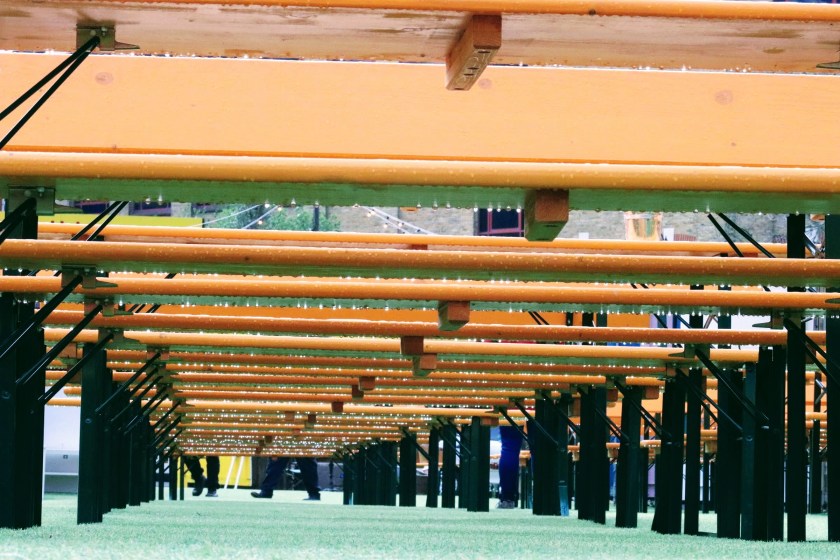 The artwork helps to promote one of London’s newest open air food and container box outlets at Vinegar Yard. It is almost deserted, with only a couple of seated guests and a few others, like me, wandering around taking photos; the reason being that it is cold and raining, so not the ideal combo for this place. Nevertheless, I suspect as the evening wears on, more brave souls will be attracted to eat and drink here later.