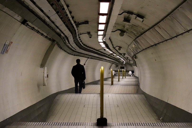 My study of the underground has yielded many pictures in an attempt to capture the constant flow of travellers making their way through the tunnel between the two stations, or on route to/from Waterloo via the underground tunnels and travelator. Some travellers have a clear plan on where they are going and others are bemused by the the whole experience. Nevertheless, I’ve compiled some of the pictures into animations to help set the scene.