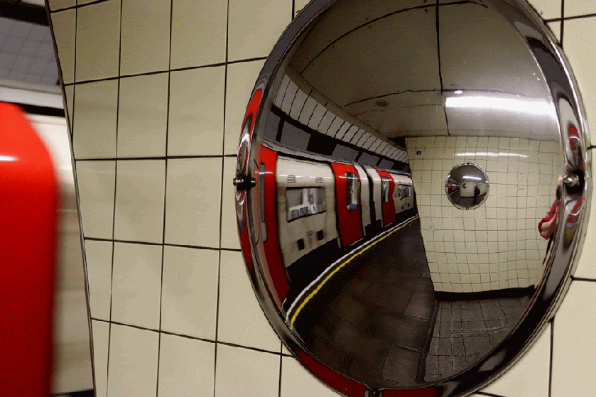 The artist has included a self portrait within an image of a small circular mirror found at the end of the platform (top right hand corner), and bizarrely just before I exited the station, I had done something similar whilst trying to capture some movement at platform level. Spooky or what?