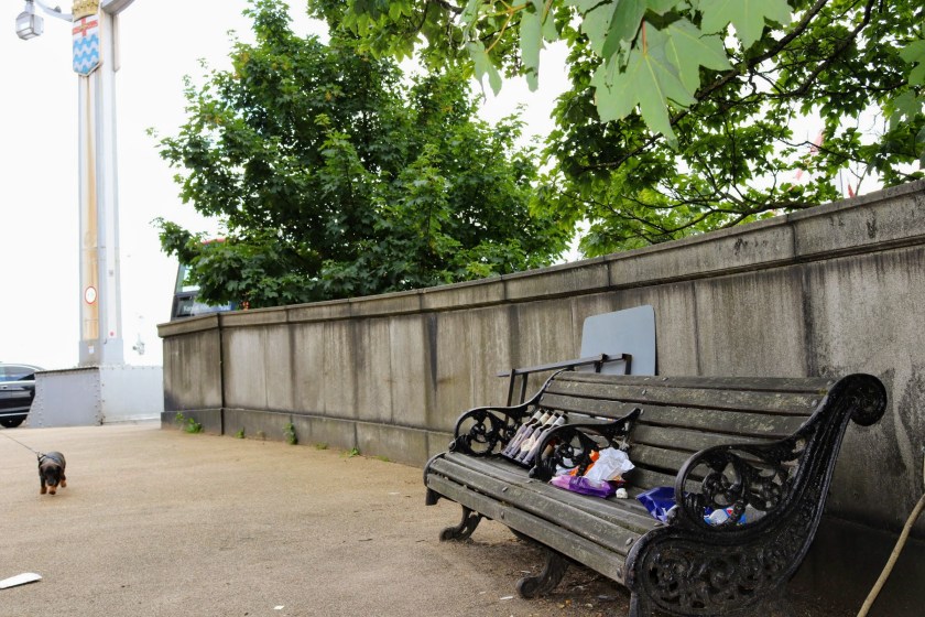 On the north shore, stepping into the London Borough of Chelsea, I capture this shot of what strikes me as a somewhat unrepresentative view of Chelsea depicting squalor in what I presume to be an affluent area. However it serves as a stark reminder that littering and drinking are not the preserve of less affluent areas.