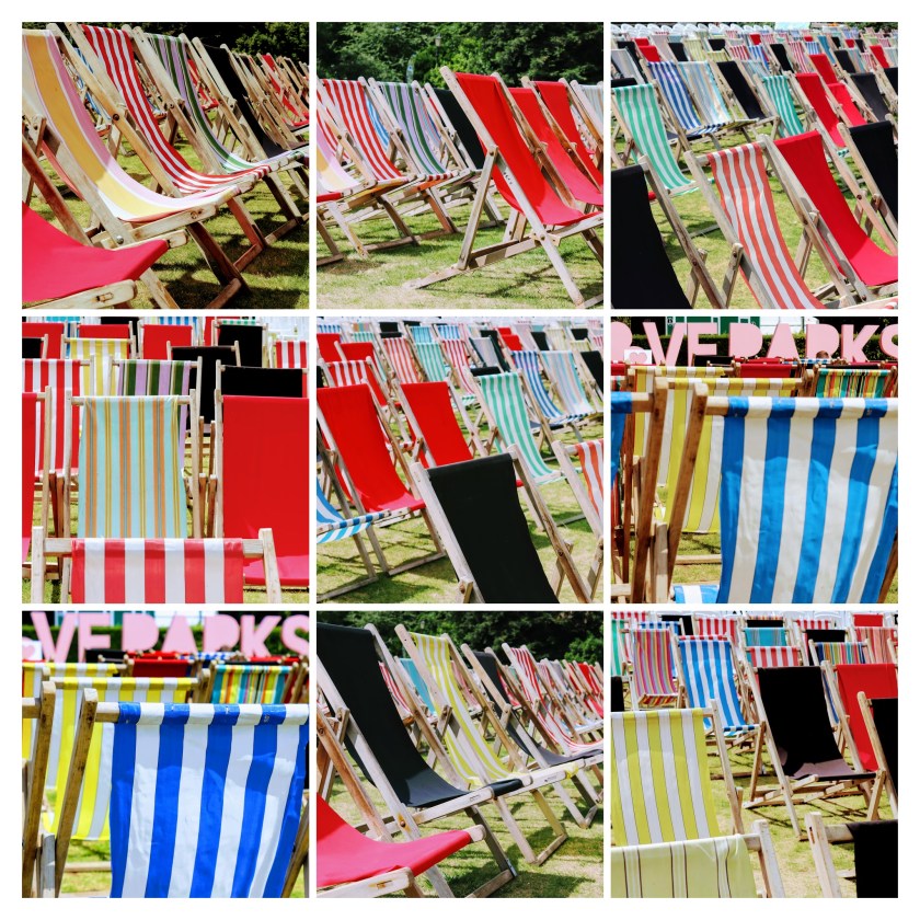 On the other side of the bandstand is an old bowling green, now used as an events area housing a large screen showing the Wimbledon Tennis. Mid afternoon, and there aren’t too many people about, but I’m assured by the ‘gatekeeper’ that as offices close, the area will fill quite quickly especially as the FIFA Women’s World Cup semi final between England and the USA is being screened. He also explained the purpose behind the ‘Loveparks’ theme being sponsored by Wandsworth Council. I took many shots of the empty deckchairs to demonstrate the area’s emptiness but I can’t decide which one to show, so I’ve created this collage to highlight the effect.