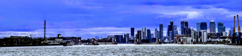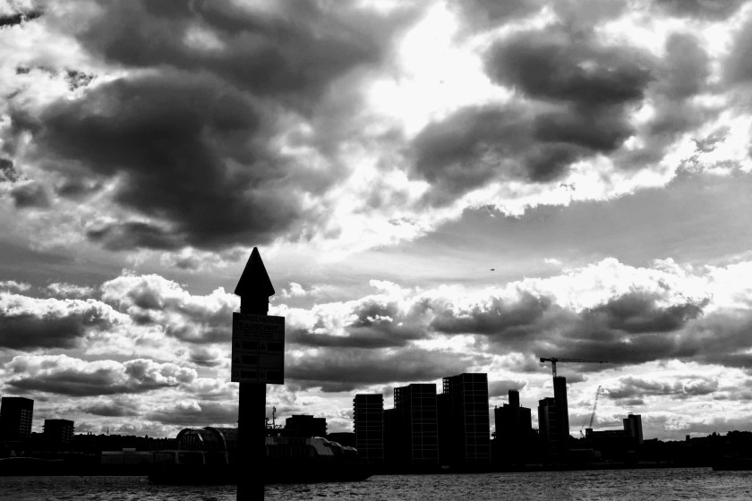 Up the 101 steps on the south shore, I head for the ferry that’s just docking and walk on freely; you see there’s no charge for pedestrians or vehicles. The view looking west from the middle of the Thames is quite surreal with the Thames Barrier in the distance with each gate’s traffic lights directing where boats should pass. It’s a relatively short journey across the river.