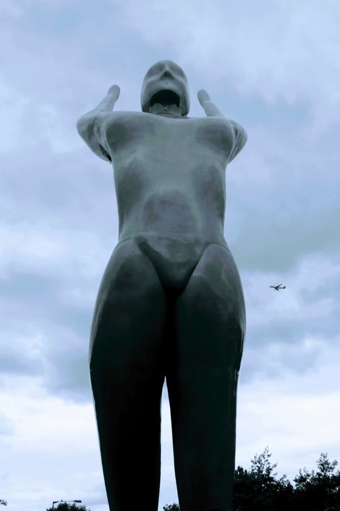 Later in the day, and as I end today’s travels on the other side of London City Airport, I stand and admire ‘Athena’ the tallest, at 12 metres high, bronze sculpture in the UK (as at 2012). The sculpture was created by Nasser Azam and designed to be visible to air travellers from the sky as they approach the airport.