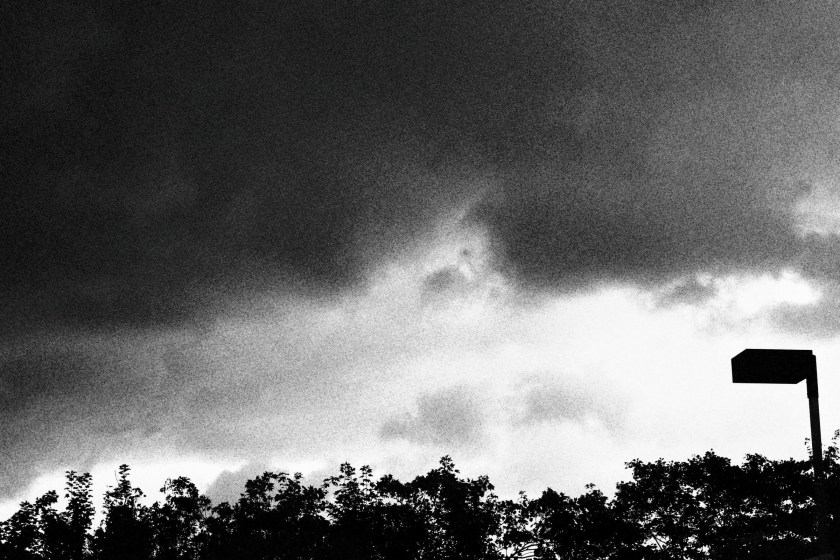 When the downpour comes, I’m at the front entrance to Tesco, cowering under a very narrow ledge that barely manages to keep me dry. But the spectacle of the rain bouncing back from the steamy pavement is too much to ignore so I set my camera near to the ground and capture the image created as the sun starts to re-emerge. People rushing by, eager to get under cover, seem oblivious to my presence so I’m able to get some interesting shots.