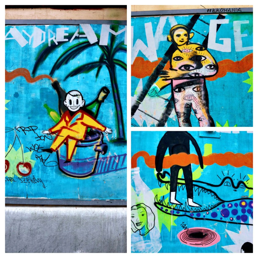 Although not connected with the station, I spot these colourful artworks on the side of a neighbouring corner shop by a local artist, Sevan Szekely.