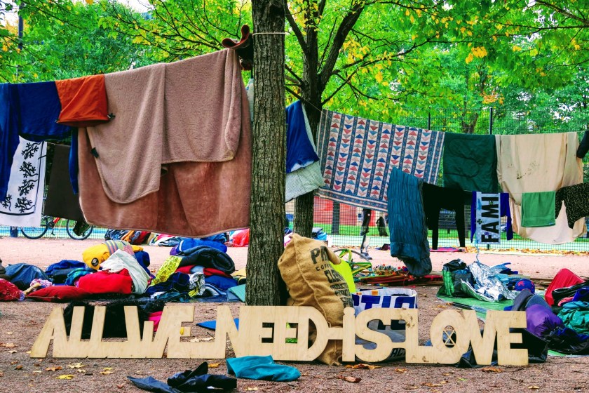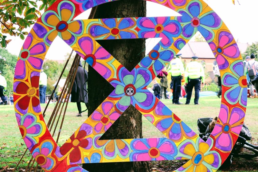 It’s only as I turn into Vauxhall Pleasure Gardens I realise what’s afoot. The Extinction Rebellion, who have over the past week or so, demonstrated across London, have partly decamped right across the gardens.