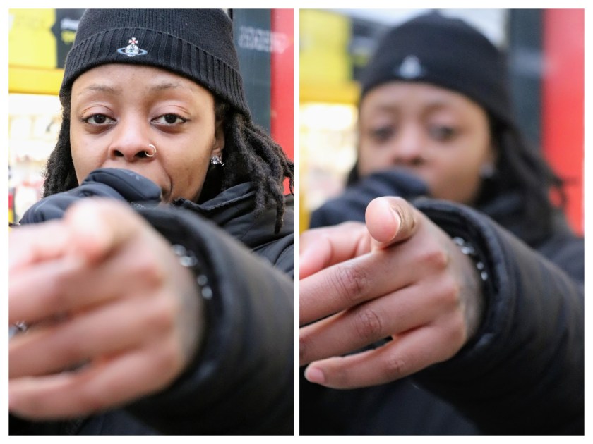 Less than 75 meters along South Street, I stop and admire the wordsmithery of @itsTrueMendous. I listen and gesticulate if it’s OK to take pictures and with a nod of agreement, I click away. She has a very acute ear and a sharp mind as her rap takes in things in her immediate surrounds; including my distraction. She stops for a short while and as we chat, I explain my ‘journey’ to Chyvonne who’s keen to understand where the best spots for busking are in the East End. I offer some suggestions and as she continues to rap, she does so to the camera. Thank you Chyvonne, and it was a blast to meet you. Go listen to her on Twitter or Instagram.