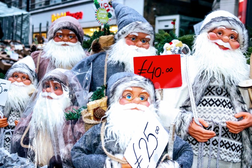 I have a fond recollection of markets; as a child in Aberystwyth, I’d listen to the traders shouting out their latest offerings, and on some occasions trying out their free samples (often sweets or rock) when the fair and market came to town every November. And so I have a particular memory of my first Christmas market in Romford in 1990, as I could hear an incomprehensible chant booming loudly over everyone and everything else. It sounded like…’pan yur sana at’. Now clearly I hadn’t quite grasped the Estuary English often heard in Romford, but as I got closer to the trader and realised what was on offer, I quickly translated his chant into ‘one pound for your santa hat’. I bought two…