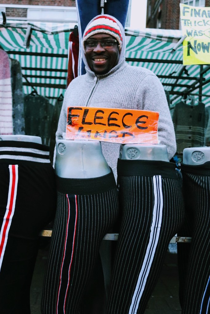 First is Ola Leggings, who owned a number of leggings stalls in the vicinity. He catches my attention as he’s singing along to Christmas music being played across the market, but became somewhat bashful as I approach and encourage him to continue.
