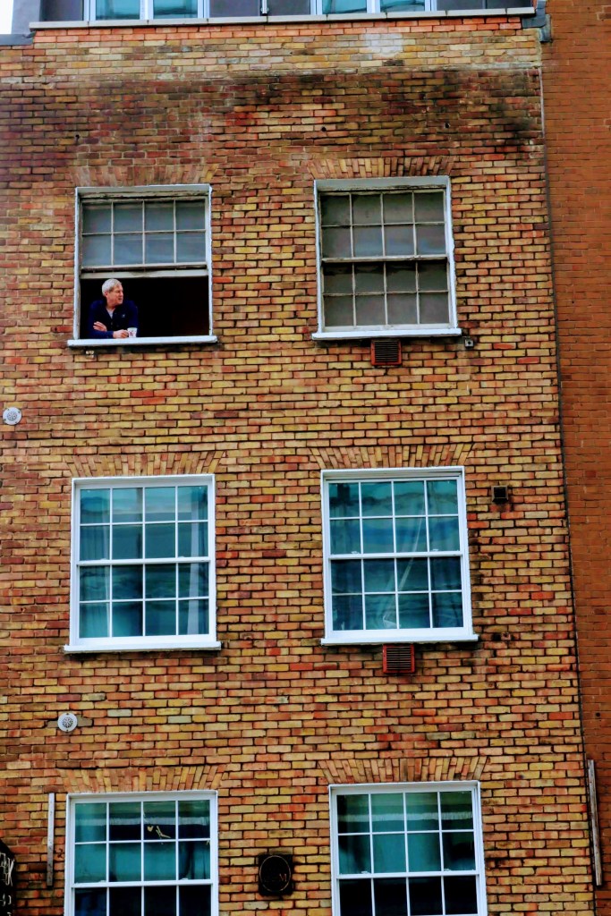 There’s also a busy terminal bus station directly across the road, thus making the area an excellent commuting hub; and plenty going on to entertain the casual observer too as this lonely figure from across the station suggests. Not quite the Woman in the Window, but maybe there’s a sequel to be written? – the Man in the Window?