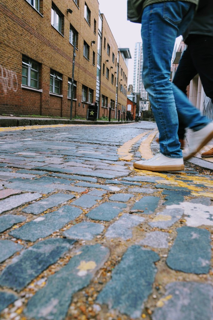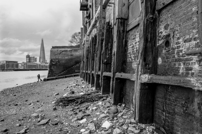 The walk is somewhat unexciting, until I realise the real gem is when I explore the little alleyways in between the wharves which lead to the water’s edge and I discover the Watermen’s stairs. These were used historically as access points to ferry people along and across the Thames, or even to bring ashore the cargo for ships moored in the Thames. The stairs would provide access to the ferry boats at high tide and at low tide the ferry boats would use the adjoining causeways.