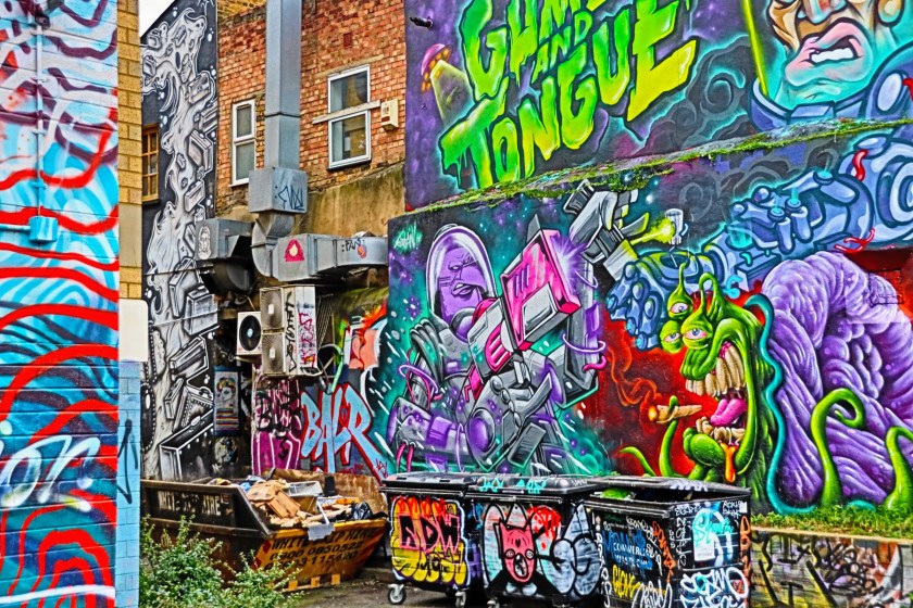 I roam aimlessly admiring the abundance of wall art. In fact there are few walls that haven’t been decorated. Some are clearly artistry and no doubt have been commissioned or painted with permission, and some are random acts of graffitti, but to be honest, not out of place. Here’s a sample of some of my finds whilst poking my nose into discrete alleys. I can guarantee, if you go visit, you’ll find your own favourites.