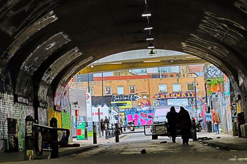 I eventually end up at the new Shoreditch Overground station, in awe of the wealth of artistic talent that surrounds the area. But there are still reminders of modern day poverty and homelessness; as I walk under the railway arches, there’s at least one homeless woman who’s clearly made this place her own.